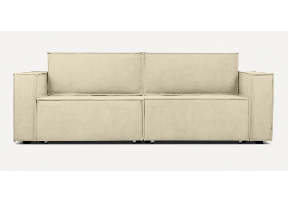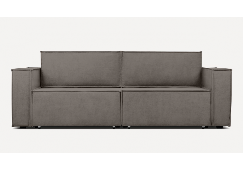 Обивка из благородного велюра и актуальная цветовая палитра будут уместны и в популярных скандинавских интерьерах, и в классических решениях. Спинку образуют две мягких объемных приставных подушки, обрамленные декоративным кантом. Шов подчеркивает силуэт и выделяет детали на общем фоне